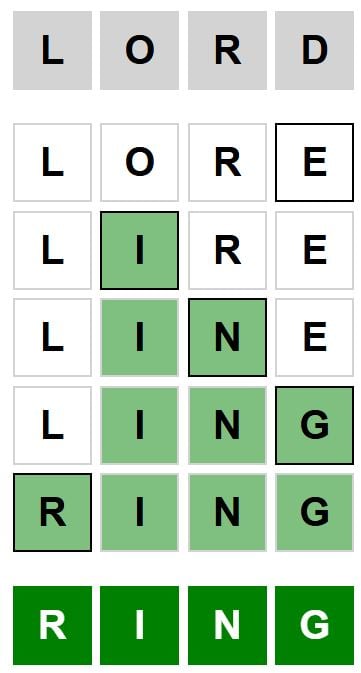Here is the answer to the Weaver puzzle today, LORD to RING, released on September 2nd 2025, and some hints to help you solve it.