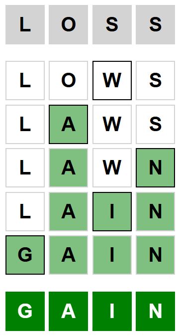 The starter word for the Weaver puzzle released today, October 1st 2025, is ‘LOSS‘ and the end word is ‘GAIN‘.