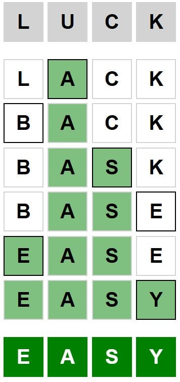 The starter word for the Weaver puzzle released today, November 14th 2025, is ‘LUCK‘ and the end word is ‘EASY‘.