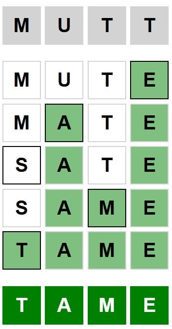 Here is the answer to the Weaver puzzle today, from mutt to tame, released on February 24th 2026, and some hints to help you solve it.