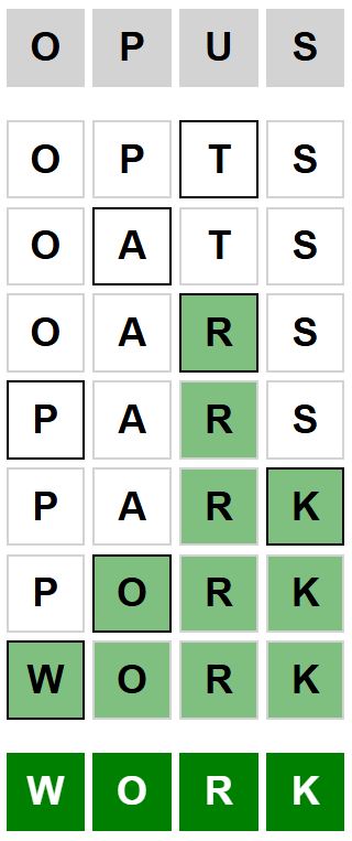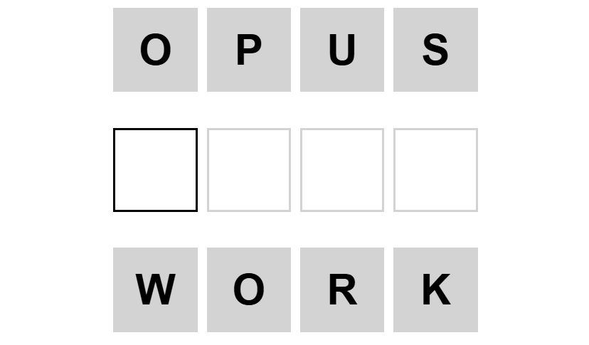 The starter word for the Weaver puzzle released today, January 10th 2026, is ‘OPUS‘ and the end word is ‘WORK‘.