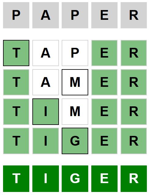 The starter word for the Weaver puzzle released today, January 13th 2026, is ‘PAPER‘ and the end word is ‘TIGER‘.