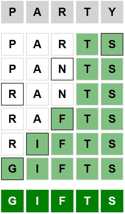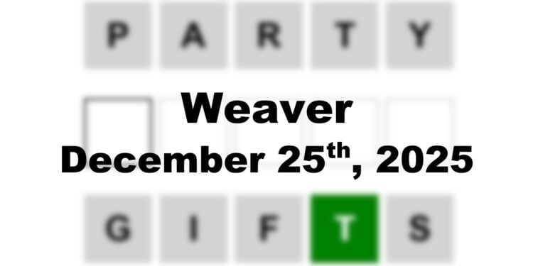 The starter word for the Weaver puzzle released today, December 25th 2025, is ‘PARTY‘ and the end word is ‘GIFTS‘.