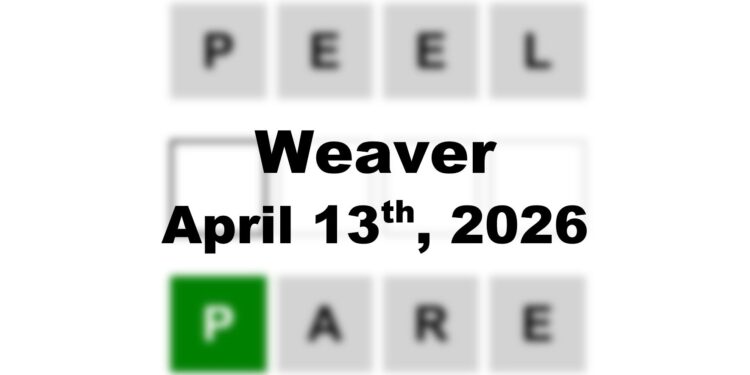 The starter word for the Weaver puzzle released today, April 13th 2026, is ‘PEEL‘ and the end word is ‘PARE‘.