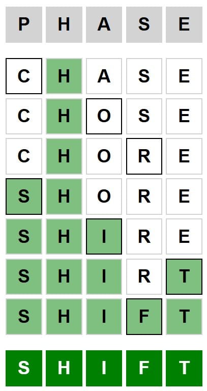 The starter word for the Weaver puzzle released today, November 30th 2025, is ‘PHASE‘ and the end word is ‘SHIFT‘.
