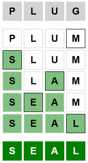 The starter word for the Weaver puzzle released today, January 8th 2026, is ‘PLUG‘ and the end word is ‘SEAL‘.