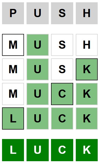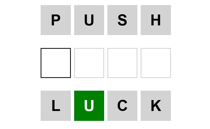 The starter word for the Weaver puzzle released today, August 25th 2025, is ‘PUSH‘ and the end word is ‘LUCK‘.