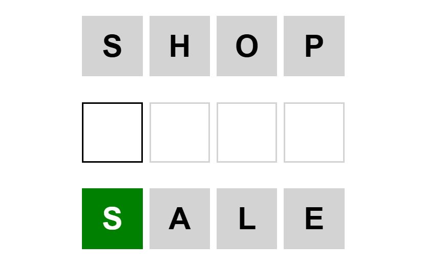 The starter word for the Weaver puzzle released today, November 28th 2025, is ‘SHOP‘ and the end word is ‘SALE‘.