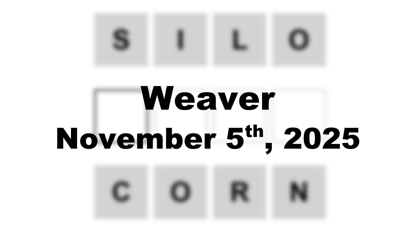 The starter word for the Weaver puzzle released today, November 5th 2025, is ‘SILO‘ and the end word is ‘CORN‘.