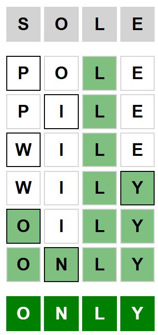 The starter word for the Weaver puzzle released today, August 21st 2025, is ‘SOLE‘ and the end word is ‘ONLY‘.