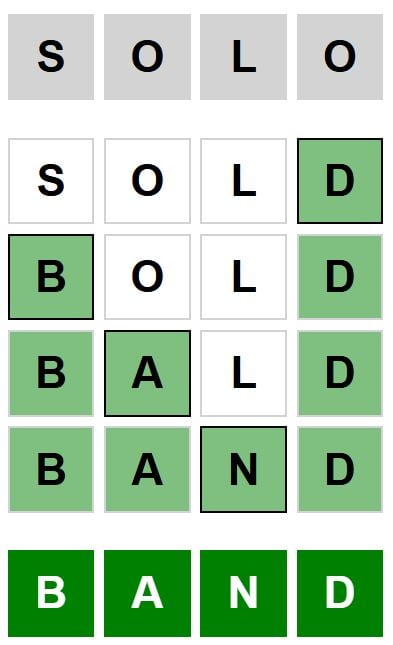 The starter word for the Weaver puzzle released today, December 1st 2025, is ‘SOLO‘ and the end word is ‘BAND‘.