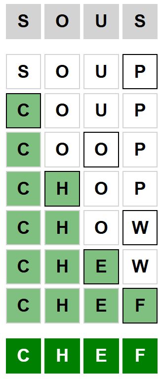 The starter word for the Weaver puzzle released today, January 17th 2026, is ‘SOUS‘ and the end word is ‘CHEF‘.