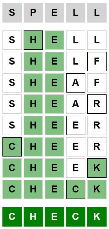 Here is the answer to the Weaver puzzle today, from spell to check, released on February 22nd 2026, and some hints to help you solve it.