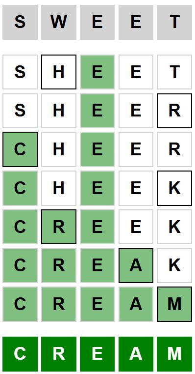 Here is the answer to the Weaver puzzle today, sweet to cream, released on December 28th 2025, and some hints to help you solve it.