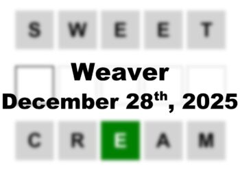 The starter word for the Weaver puzzle released today, December 28th 2025, is ‘SWEET‘ and the end word is ‘CREAM‘.
