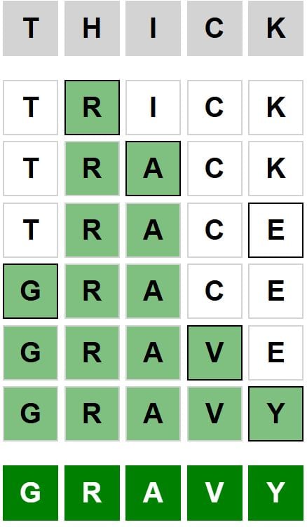 The starter word for the Weaver puzzle released today, November 27th 2025, is ‘THICK‘ and the end word is ‘GRAVY‘.