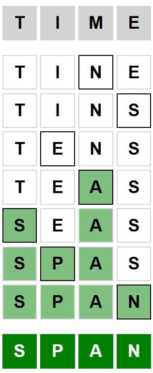 Here is the answer to the Weaver puzzle today, time to span, released on November 15th 2025, and some hints to help you solve it.