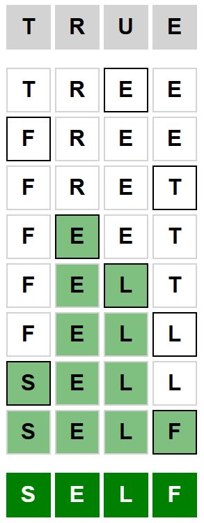 The starter word for the Weaver puzzle released today, March 15th 2026, is ‘TRUE‘ and the end word is ‘SELF‘.