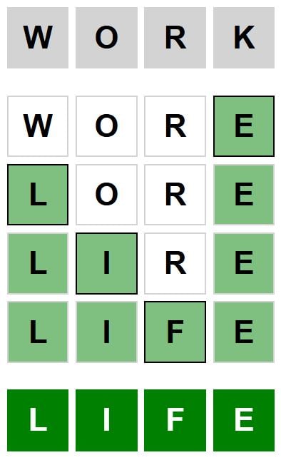 The starter word for the Weaver puzzle released today, November 24th 2025, is ‘WORK‘ and the end word is ‘LIFE‘.