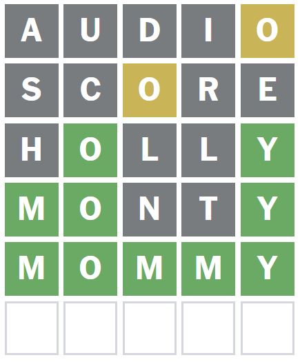 I guessed the word ‘HOLLY’ next as I wanted to see if the O is the second letter.