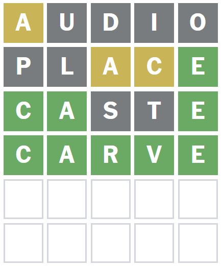 I guessed the word ‘CASTE’ next as I thought the A would be the second letter and it also puts the C in a different position.