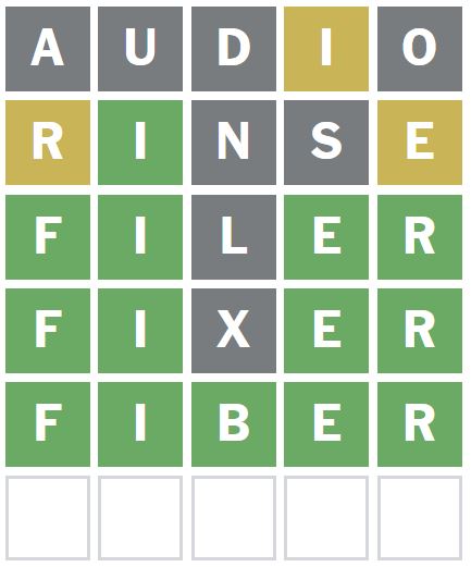 This was a good word to guess as it placed the I correctly and showed me that there is an E and R in the Wordle answer today.
