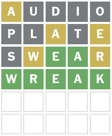 I thought the vowels could be next to each other, so I guessed the word ‘SWEAR’ next as it also uses different letters from the ones already guessed.
