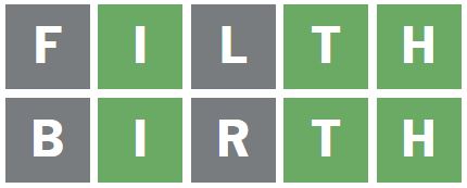 This left the first and third letters to be guessed, so I went with the word ‘BIRTH’ next.
