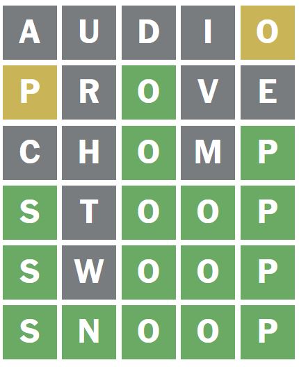 I guessed the word ‘STOOP’ next, which was a great word to guess as it placed the S and other O in the correct positions.