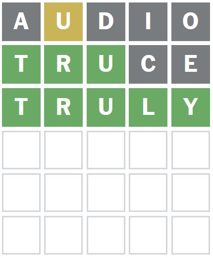 This was a great word to guess as it placed the T, R and U correctly at the start of the Wordle answer today.