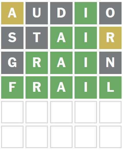 I then wanted to guess a word that puts the A in a different position, so I guessed the word ‘STAIR’ next.