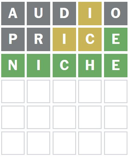 Here is how I managed to solve Wordle 1250 in three guesses today. I guessed the word ‘AUDIO’ first, which is my usual starter word.