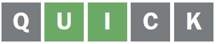 I then wanted to guess a word that puts the I after the U, so I guessed the word ‘QUICK’ next.