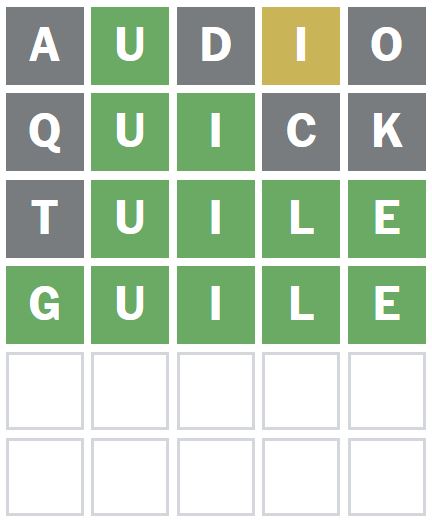 Here is how I managed to solve Wordle 1262 in four guesses today. I guessed the word ‘AUDIO’ first, which is my usual starter word.