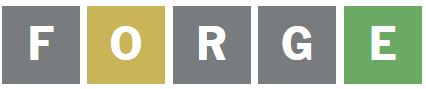 I then wanted to guess a word that puts the O in a different position and has an E in it, so I guessed the word ‘FORGE’ next.