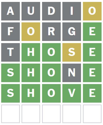 I guessed the word ‘THOSE’ next as it puts the O in a different position and uses different letters from the ones already guessed.
