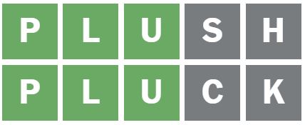 I guessed the word ‘PLUSH’ next, which placed the L correctly as the second letter.
