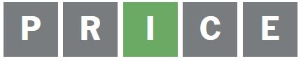 I wanted to guess a word that puts the I in a different position and has an E in it, so I guessed the word ‘PRICE’ next.