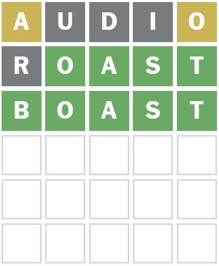 Here is how I managed to solve Wordle 1276 in three guesses today. I guessed the word ‘AUDIO’ first, which is my usual starter word.