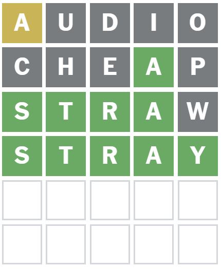 ‘STRAW’ was the next word I guessed, which placed the S, T and R in the correct positions.