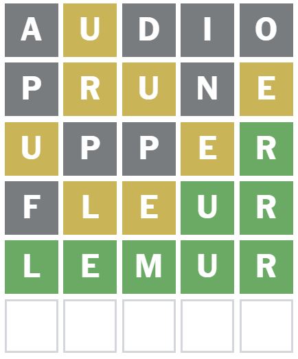 Here is how I managed to solve Wordle 1291 in five guesses today. I guessed the word ‘AUDIO’ first, which is my usual starter word.
