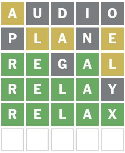 I guessed the word ‘RELAY’ next, which unfortunately was not the Wordle answer today.