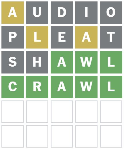 ‘SHAWL’ was the next word I guessed as it puts the known letters in different positions.