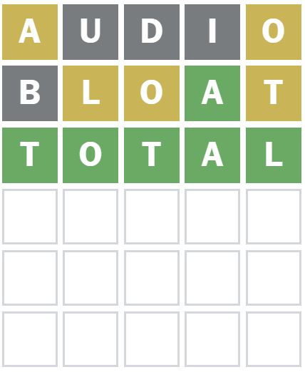 Here is how I managed to solve Wordle 1303 in three guesses today. I guessed the word ‘AUDIO’ first, which is my usual starter word.