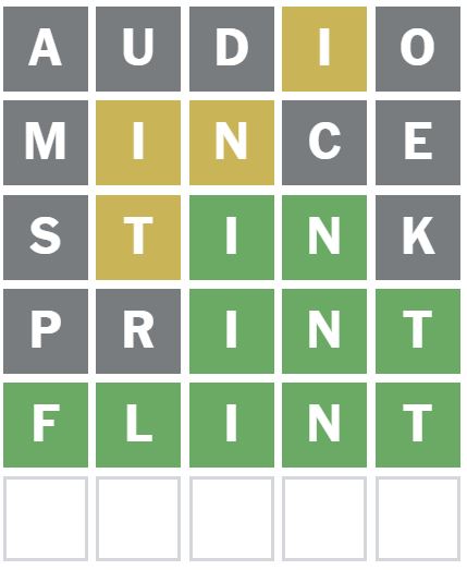 I guessed the word ‘PRINT’ next, which placed the T correctly as the last letter.