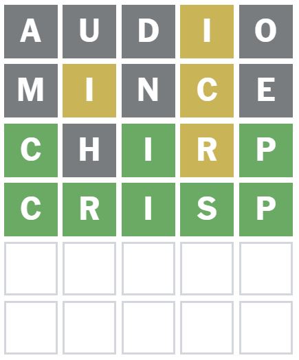 ‘I guessed the word ‘CHIRP’ next, which was a great word to guess which placed the C, I and P correctly.