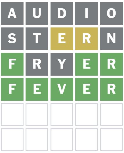 ‘FRYER’ was the next word I guessed, which placed the F, E and R correctly.