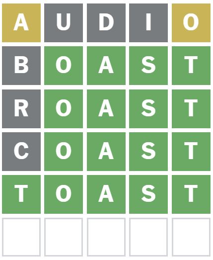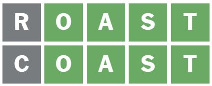 I guessed the words ‘ROAST’ and ‘COAST’ next, but neither of these are the Wordle answer today.