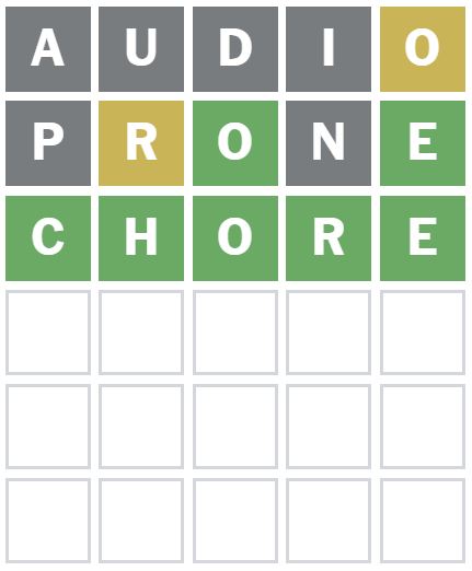 This was a great word to guess as it placed the O and E correctly, as well as showing me there is an R in the Wordle answer today.