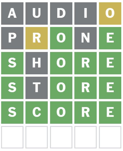‘STORE’ was the next word I guessed, but unfortunately is not the Wordle answer for today.